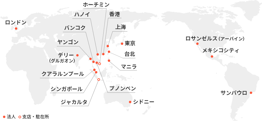 現在では、豊富な経験と長年培ったノウハウを活かし、グローバル企業として高品質なサービスをエンドユーザーの皆様へ提供するため、ネットワークを世界18ヵ国30拠点(2025年3月末現在)にまで拡大構築しています。