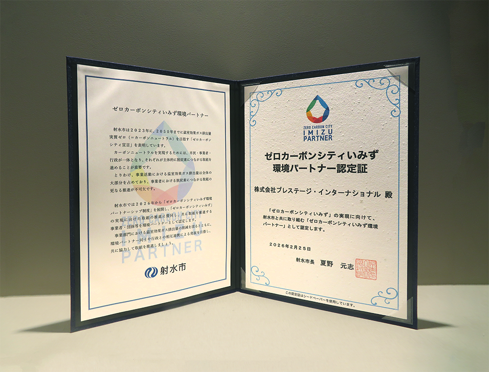 株式会社プレステージ・インターナショナル(本社:東京都千代田区、代表取締役:玉上 進一)は、富山BPOタウンが、射水市の推進する「ゼロカーボンシティいみず」環境パートナーに登録され、2月25日に行われた認定式に出席しましたことをお知らせいたします。